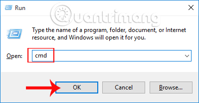 Trước hết, chúng ta cần mở hộp thoại Run bằng tổ hợp phím Windows + R và gõ từ khóa cmd, nhấn OK để truy cập.